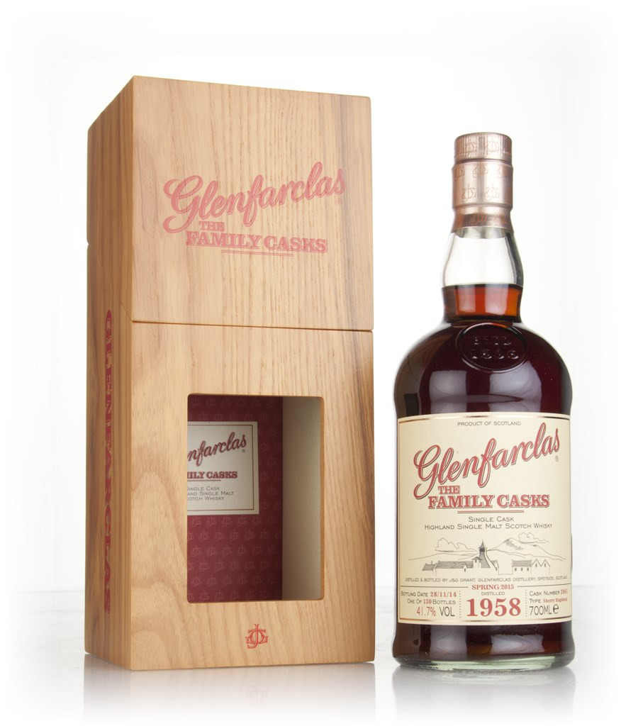 Incredibly well-aged and well-Sherried single malt from the legendary Glenfarclas distillery, released for their Family Cask range. This was distilled all the way back in 1958 and left to age in a single Sherry hogshead until November 2014 (hence the staggeringly dark hue of the whisky!). Just 130 bottles were produced.