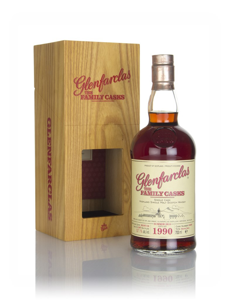 Heavily-sherried single malt from Glenfarclas, drawn form a single sherry butt that was laid down in 1990. The cask was opened in July 2018 and the whisky was bottled as part of the Glenfarclas Family Cask Summer 2018 release, with an outturn of 597 bottles.