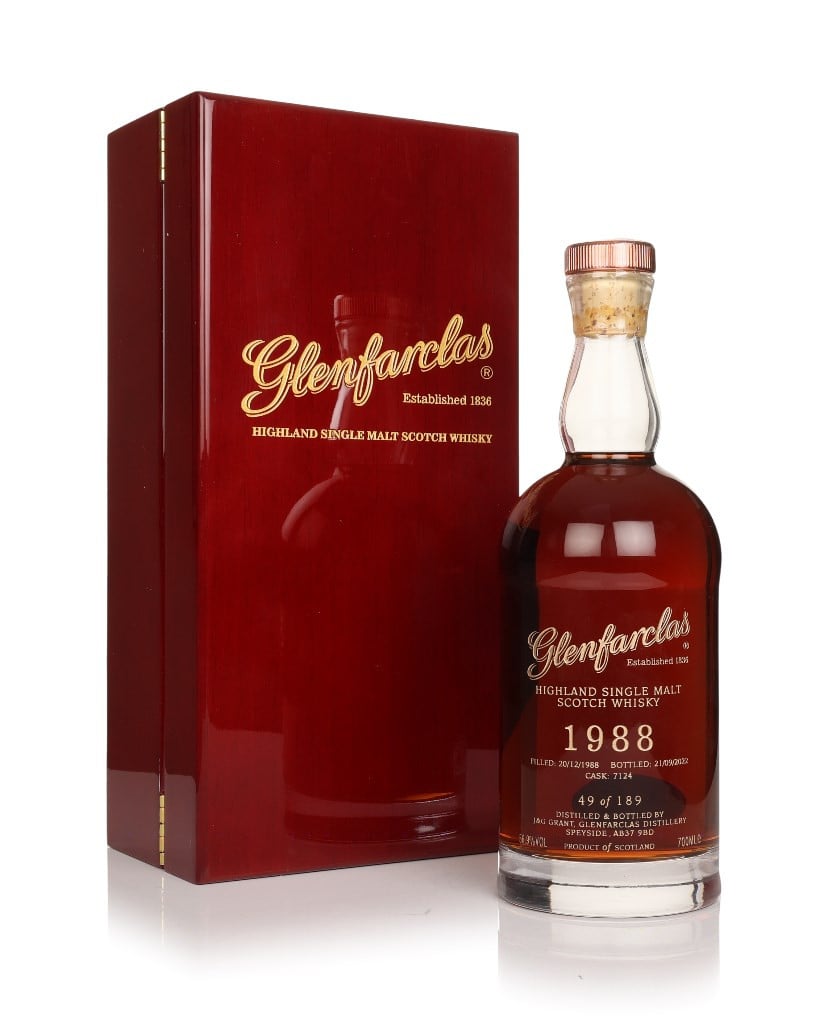 Distilled at Glenfarclas on 20 December 1988, this single malt spent 33 years maturing in a single cask until it was bottled in September 2022. The smart bottle includes engraved details, including the bottle number and total outturn (189 bottles), and comes housed in a suitably smart presentation case.