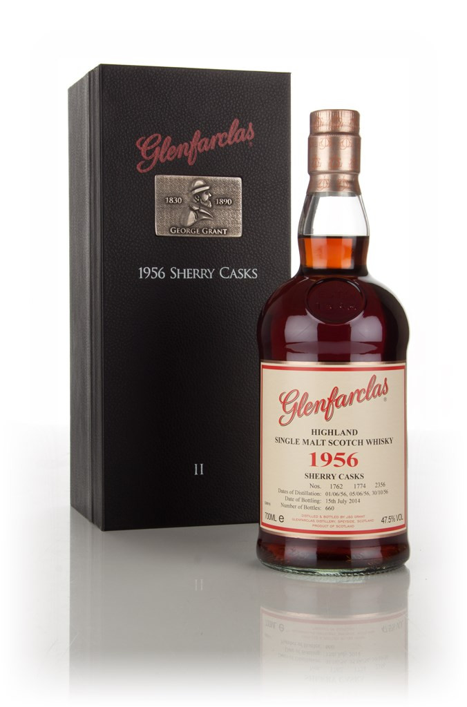 This is the second release in a series of six very special bottlings from the legendary Glenfarclas distillery, the first of which featured a 47 year old single malt matured in 3 Fine Sherry casks. For the second release, they've ventured deep into their warehouses and pulled out three casks (1762,1774 & 2356) that previously held Oloroso Sherry. They were filled by Glenfarclas in 1956 and bottled in 2014. 660 bottles were produced.