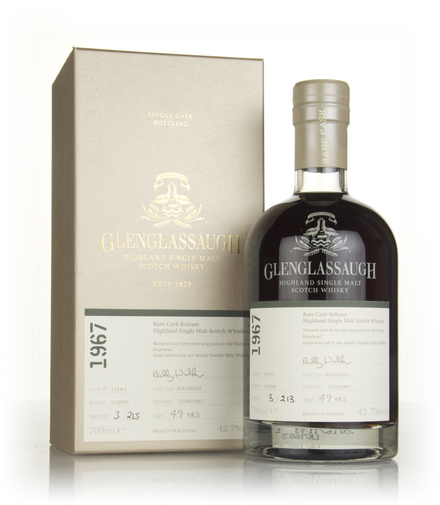 An incredibly rich and decadent single malt from Glenglassaugh, released for their Rare Cask Release Batch 3. It was distilled in May 1967 and matured in a single hogshead cask for a massive 49 years, until it was bottled in November 2016. 213 bottles were produced. One of a handful of expressions from the Rare Cask Release Batch 3, all of which were matured for at least 30 years!