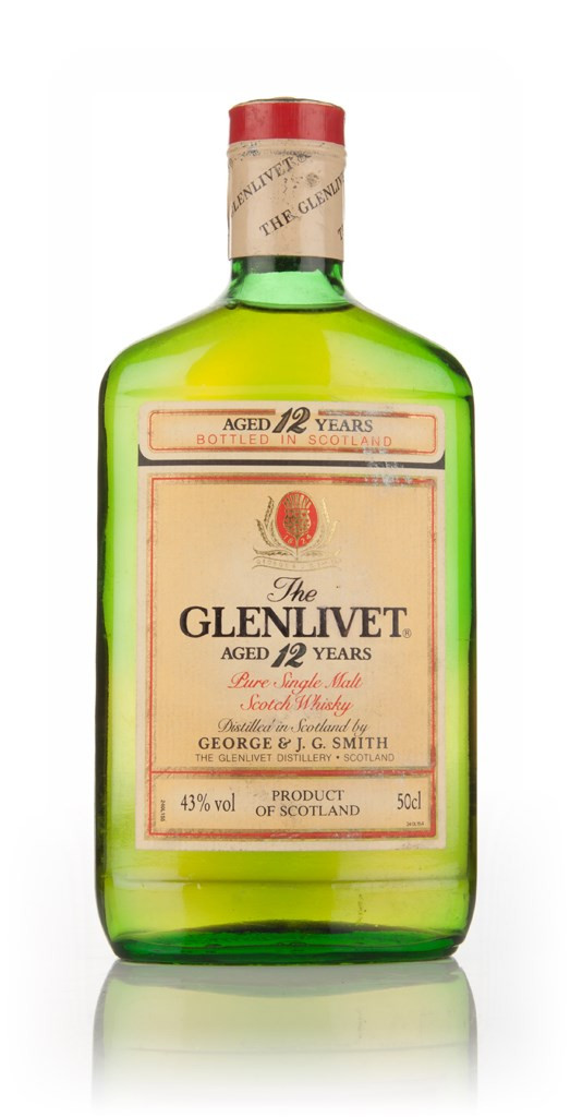 This is a 50cl flat bottle of Glenlivet 12 Year Old, produced back in the 1980s. You know, the days when they called it "Pure Single Malt Scotch Whisky". Different times...
