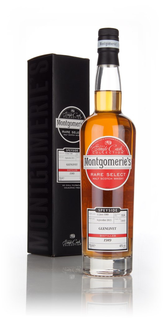 A Montgomerie's Rare Select bottling of single malt Scotch whisky from the renowned Glenlivet distillery in Speyside. Drawn from a single cask, this whisky was matured from June 1989 to September 2013, when it was bottled at 23 years old.