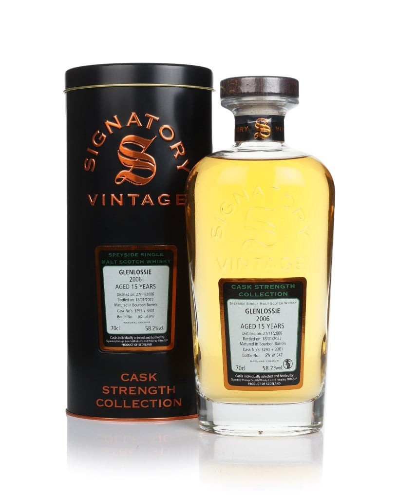 From Signatory's marvellous Cask Strength Collection comes a fantastic Glenlossie single malt Scotch whisky, aged in a pair of bourbon barrels. Those cask were filled back in 2006, and were home to the whisky for 15 years, before being cracked open in 2022. 347 bottles were produced.