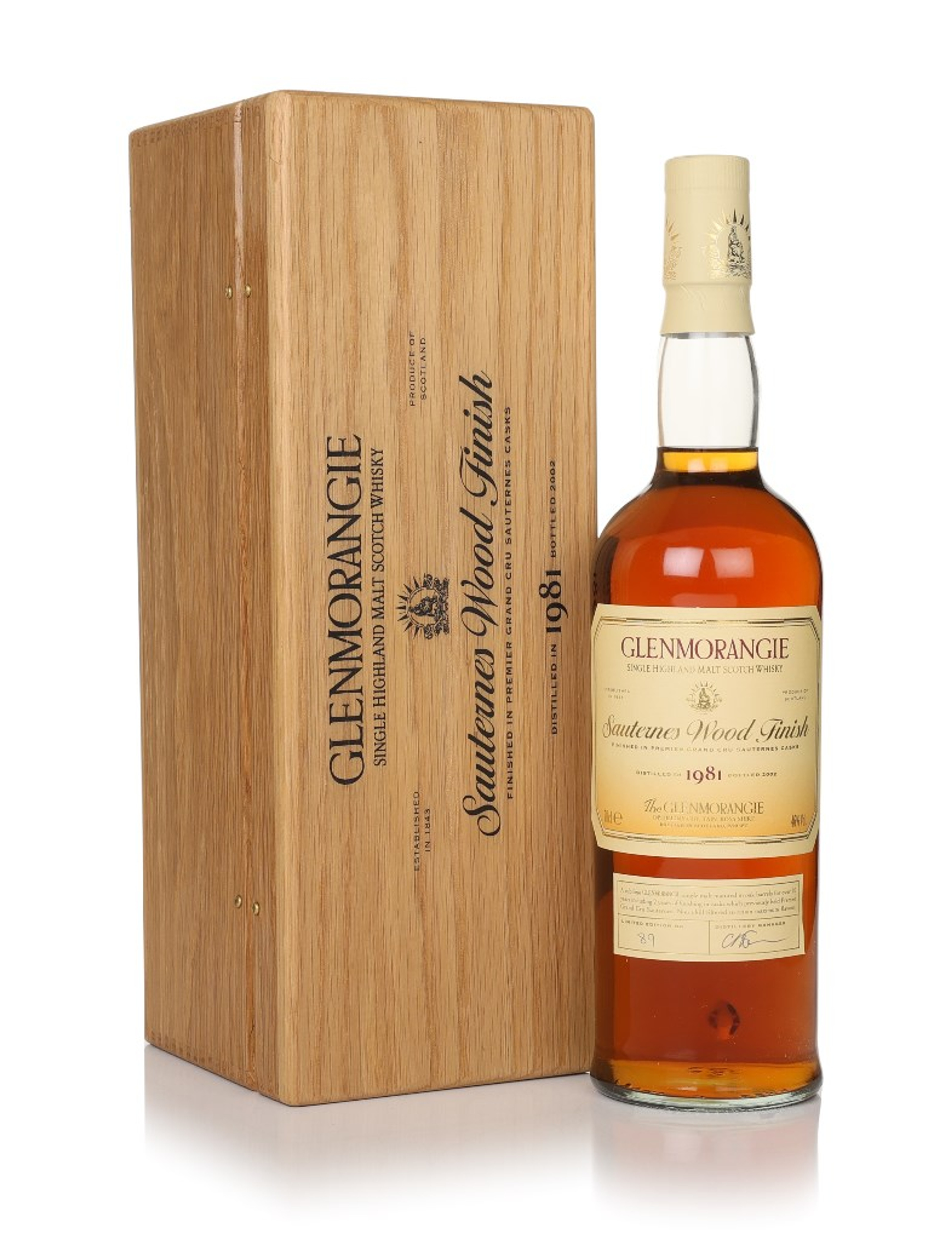 The predecessor of Glenmorangie's Nectar D'Or, the 1981 Sauternes Wood Finish was aged for 21 years, the last two of which were spent in premier cru Chateau d'Yquem casks. There are just 4,000 individually numbered bottles.