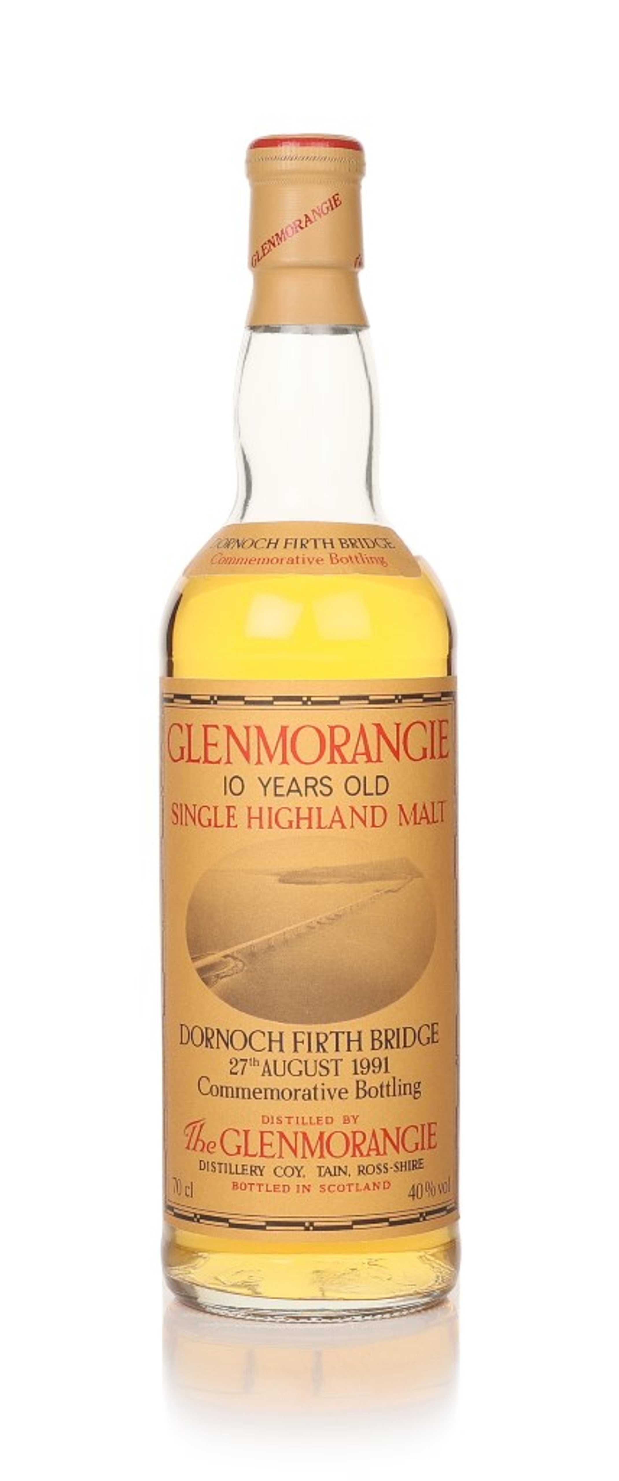 An old school bottle of classic Glenmorangie 10 Year Old single malt, released to commemorate the opening of the Dornoch Firth Bridge on 27 August 1991.
