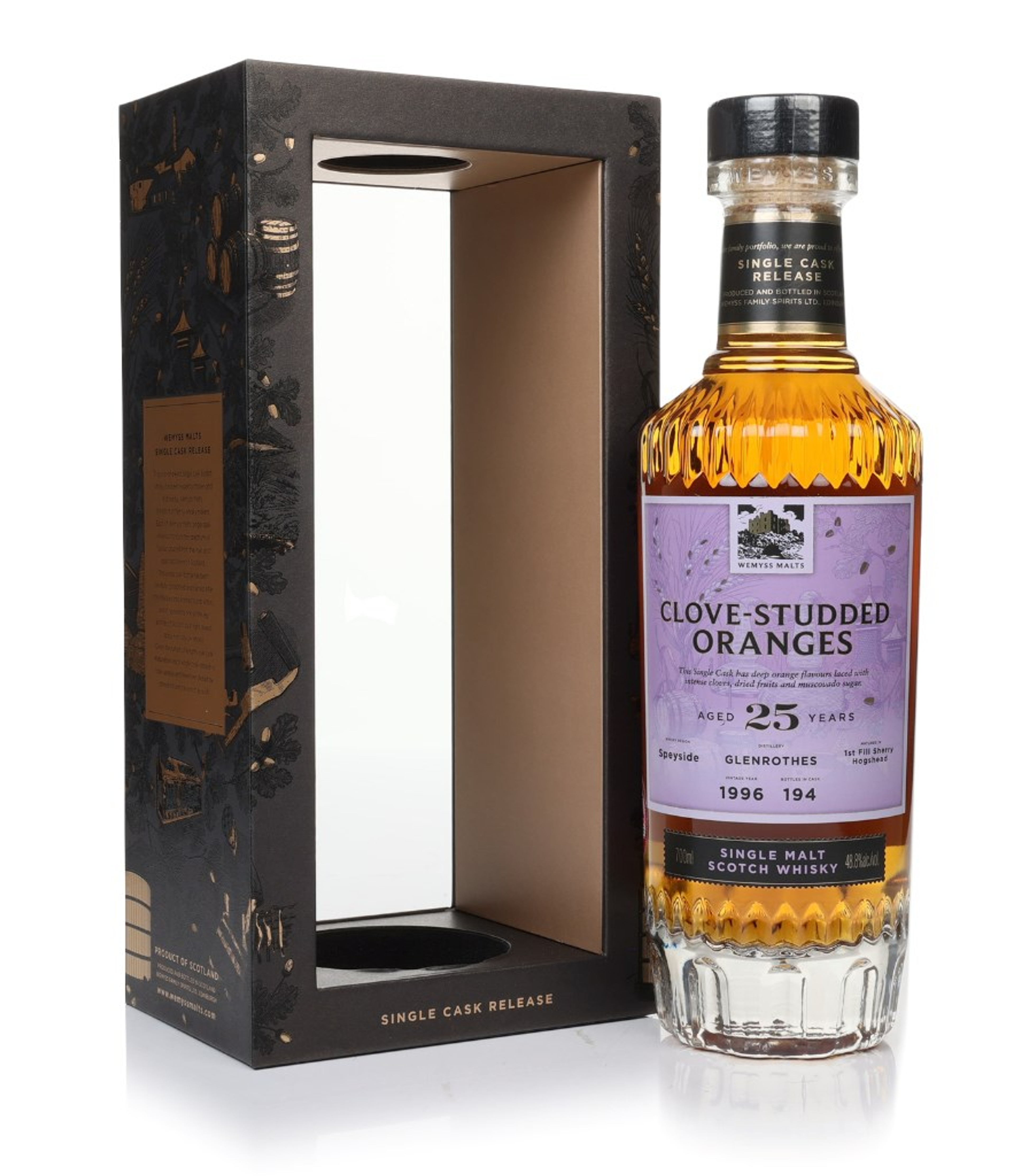 This fabulous single cask single malt from Glenrothes was independently bottled by Wemyss Malts. Distilled in 1996 and aged in a first fill sherry hogshead for a generous 25 years, it's brimming with fruit and spice, and everything nice – in case the name hasn't given that away. With an outturn of 194 bottles at 48.8%, this is a fantastic find for lovers of full-flavoured, fruity drams.
