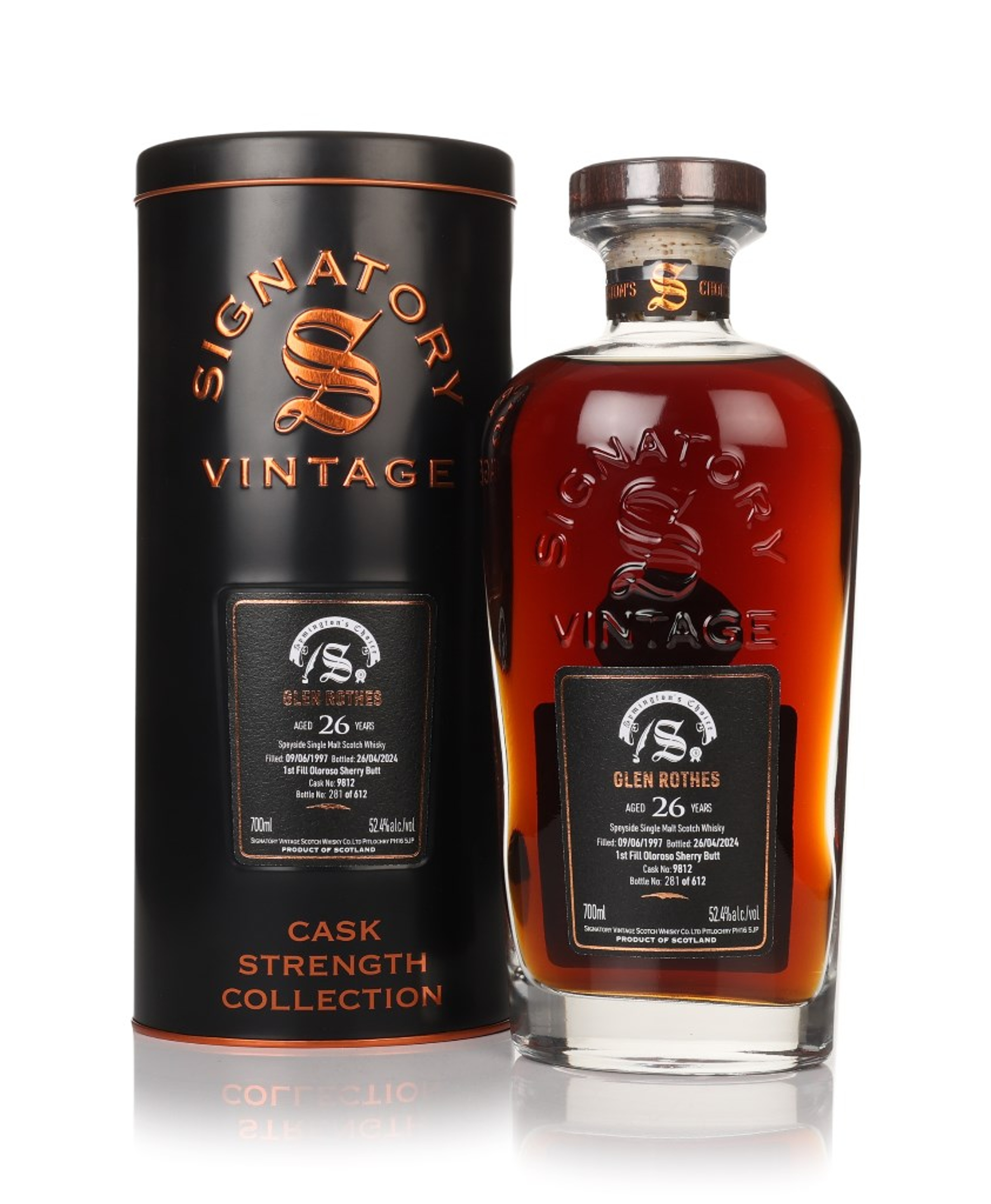 Distilled in 1997, this splendidly sherried single malt from Glenrothes spent the following 26 years maturing in a first-fill oloroso sherry butt. The cask was opened by Signatory in 2024, releasing a total of 612 bottles for its Cask Strength Collection.