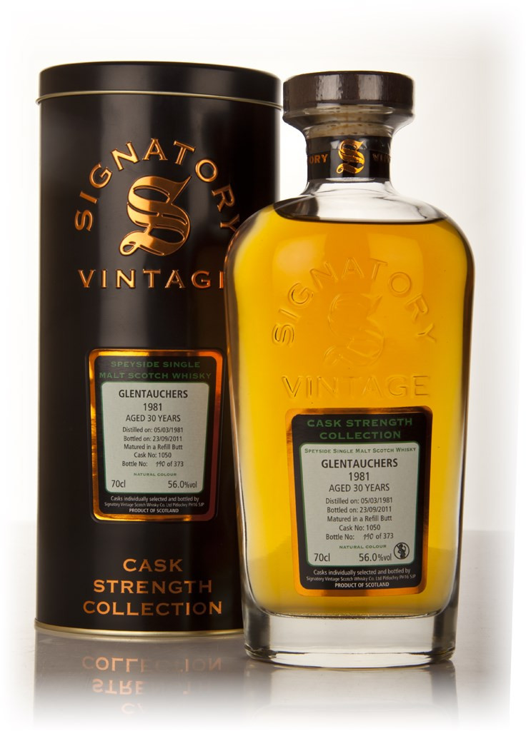 This was distilled on the 5th March 1981 at the Glentauchers distillery, this was aged for 30 years in cask 1050 (a refill butt), before bottling on the 23rd September 2011. A release of 373 numbered bottles from Signatory's Cask Strength Collection.