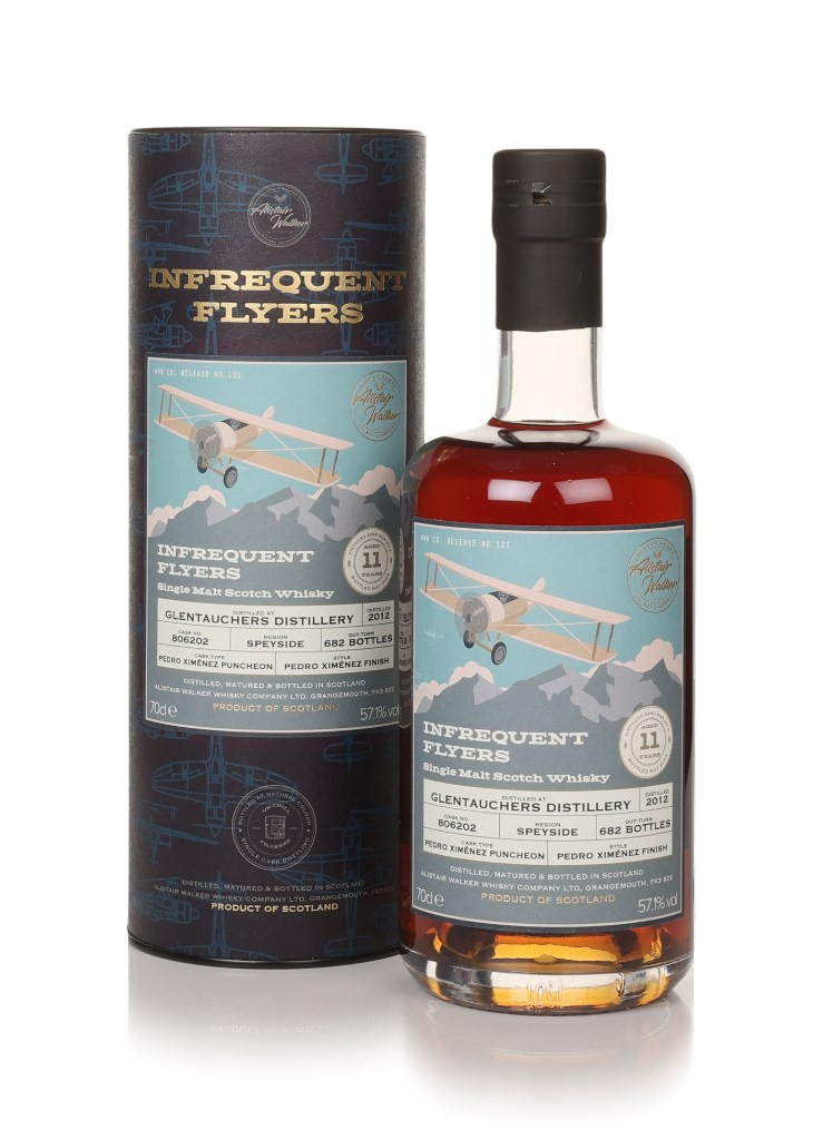 Splendid Speyside single malt from Glentauchers, distilled in 2012 and matured for 11 years, including a finish in a Pedro Ximénez sherry puncheon. The cask was opened by Alistair Walker in 2023, releasing a total of 682 bottles for the Infrequent Flyers collection.