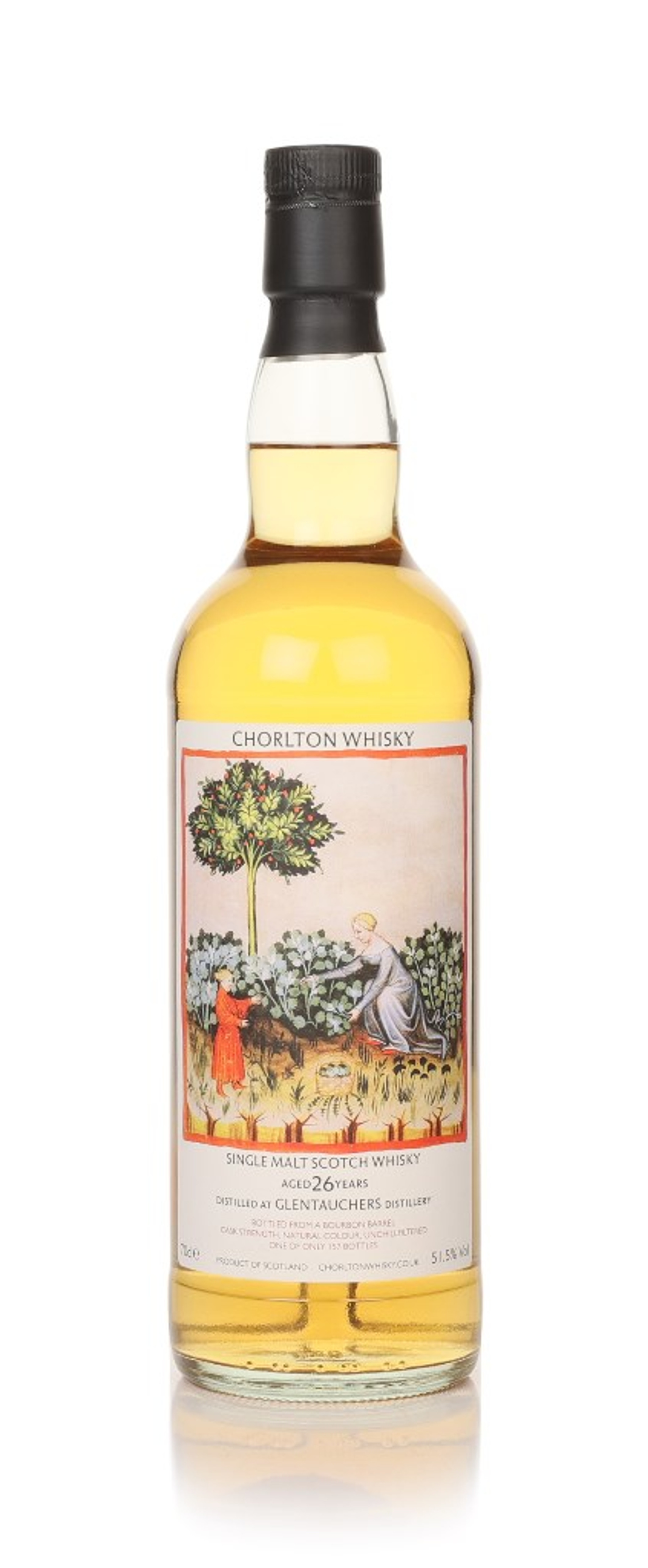 Glentauchers single malt, independently bottled by Chorlton Whisky. After maturing for 26 years, a total of 157 bottles were drawn from a bourbon barrel, released at cask strength, and without added colour or chill filtration.