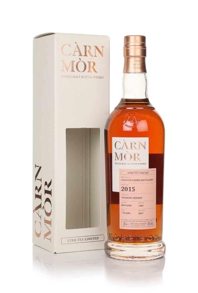 Glentauchers single malt, matured for 7 years between 2015 and 2023 in an oloroso sherry cask before being independently bottled by Càrn Mòr at 47.5% ABV for its Strictly Limited series.