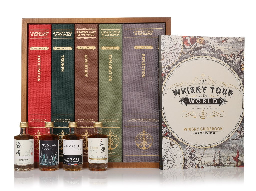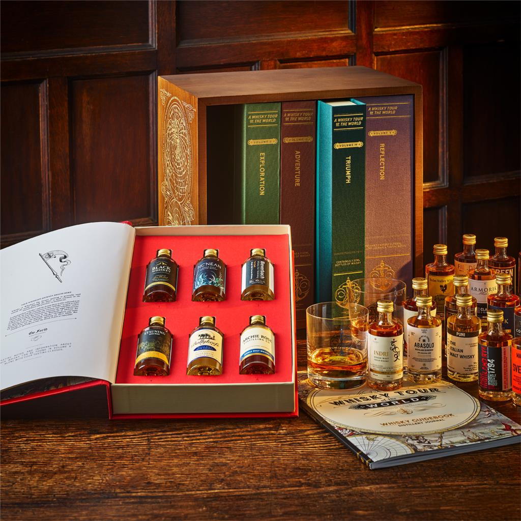 From Gravity Drinks, the Whisky Tour of the World Advent Calendar was released for Christmas 2024. It's presented in a handmade, engraved wooden bookcase containing 5 linen-bound and gold-foiled books as well as 24 whiskies in 50ml drams. There are also two whisky glasses plus an illustrated book on the 24 distilleries, the whiskies and tasting notes. The whisky tour takes you to awarded distilleries from Scotland, Japan, Taiwan, India, Ireland, Peru, Germany, Denmark, Australia, Canada, England, Sweden, Austria, New Zealand, Mexico, Finland, the USA, France, and Italy.