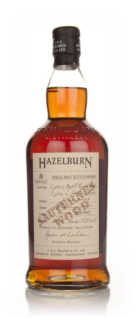 An extraordinary whisky, this Hazelburn was aged for 5 years in refill bourbon casks, and finished for a full three years in Sauternes casks! It was distilled in June 2002, and bottled at natural cask strength in February 2011, and there are just 9,180 bottles.