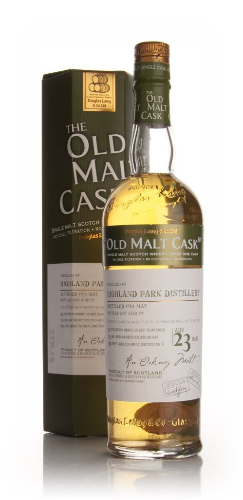 A 23 year old single cask from one of Scotland's most prestigious distilleries, Highland Park. This was distilled in May of 1984 and aged in a refill butt before bottling by Douglas Laing in August of 2007, with a release of 655 bottles.