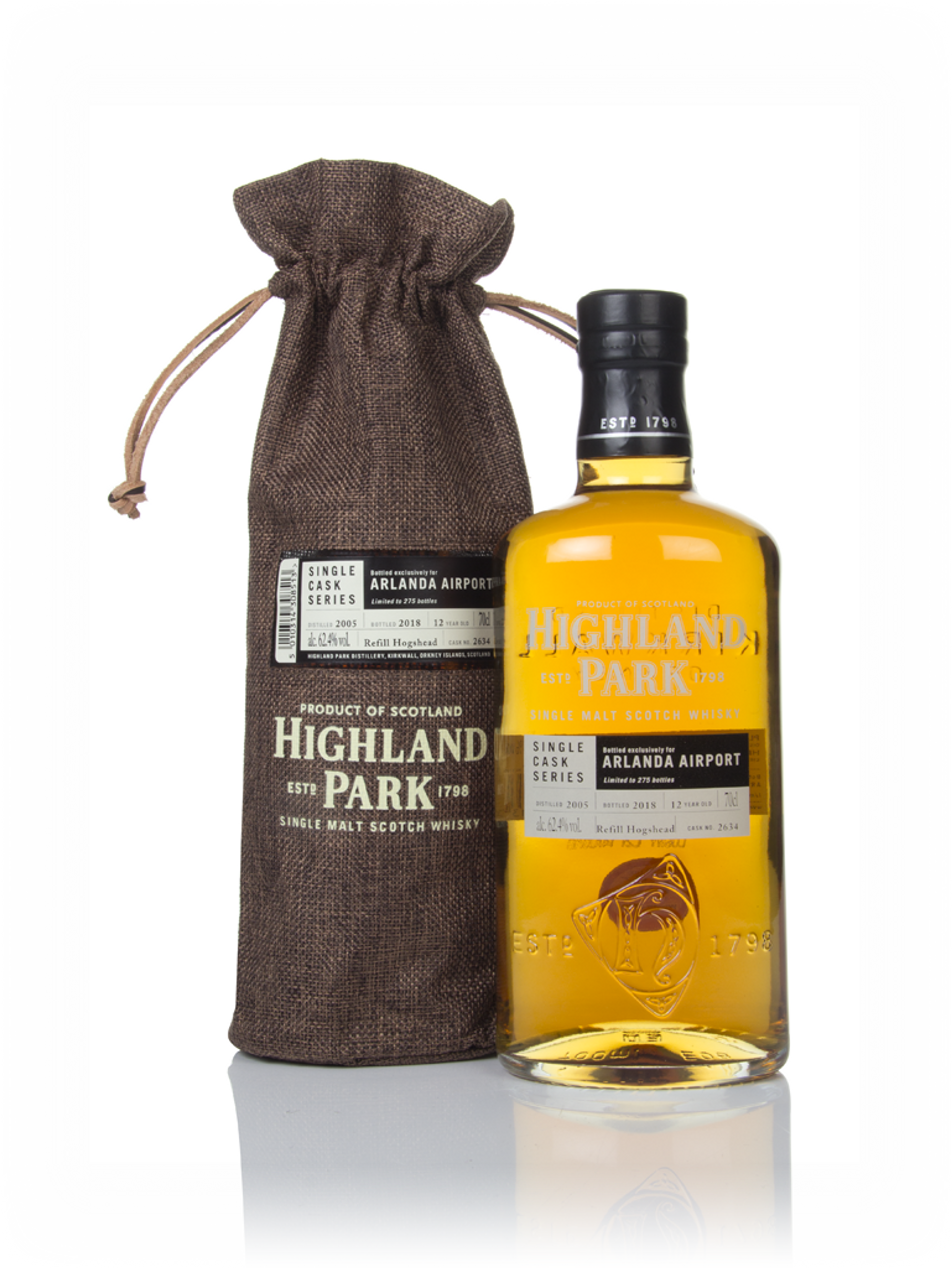 Single cask single malt from Highland Park, originally bottled for Stockholm's Arlanda Airport. It was drawn from one hogshead, which was laid down in 2005 and cracked open 12 years later in 2018. Just 275 bottles were produced. Arlanda Airport is one of two Stockholm airports - the larger one, in fact! Fun bit of trivia for all you globetrotters out there.