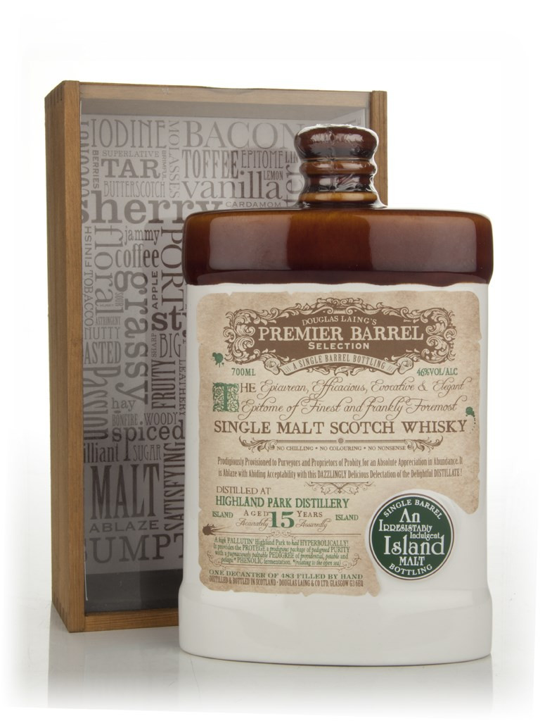 This is an exceptional Highland Park bottled by Douglas Laing for their Premier Barrel range. The whisky is presented in a porcelain decanter and boasts notes of tropical fruits and peat.