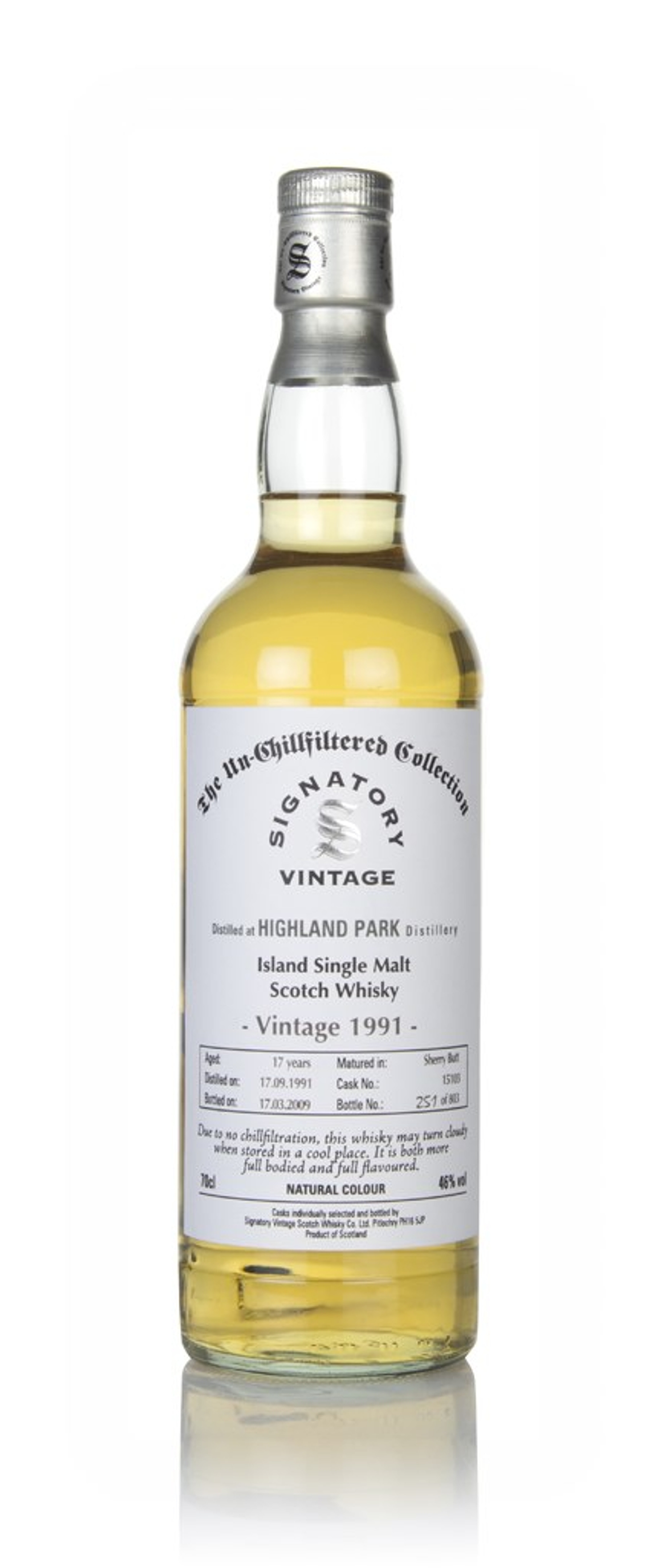 A Signatory bottling of Highland Park, released as part of the Un-Chillfiltered Collection. It was distilled back in 1991 and left to age for 17 years until it was bottled in 2009 (without chill-filtration, of course).