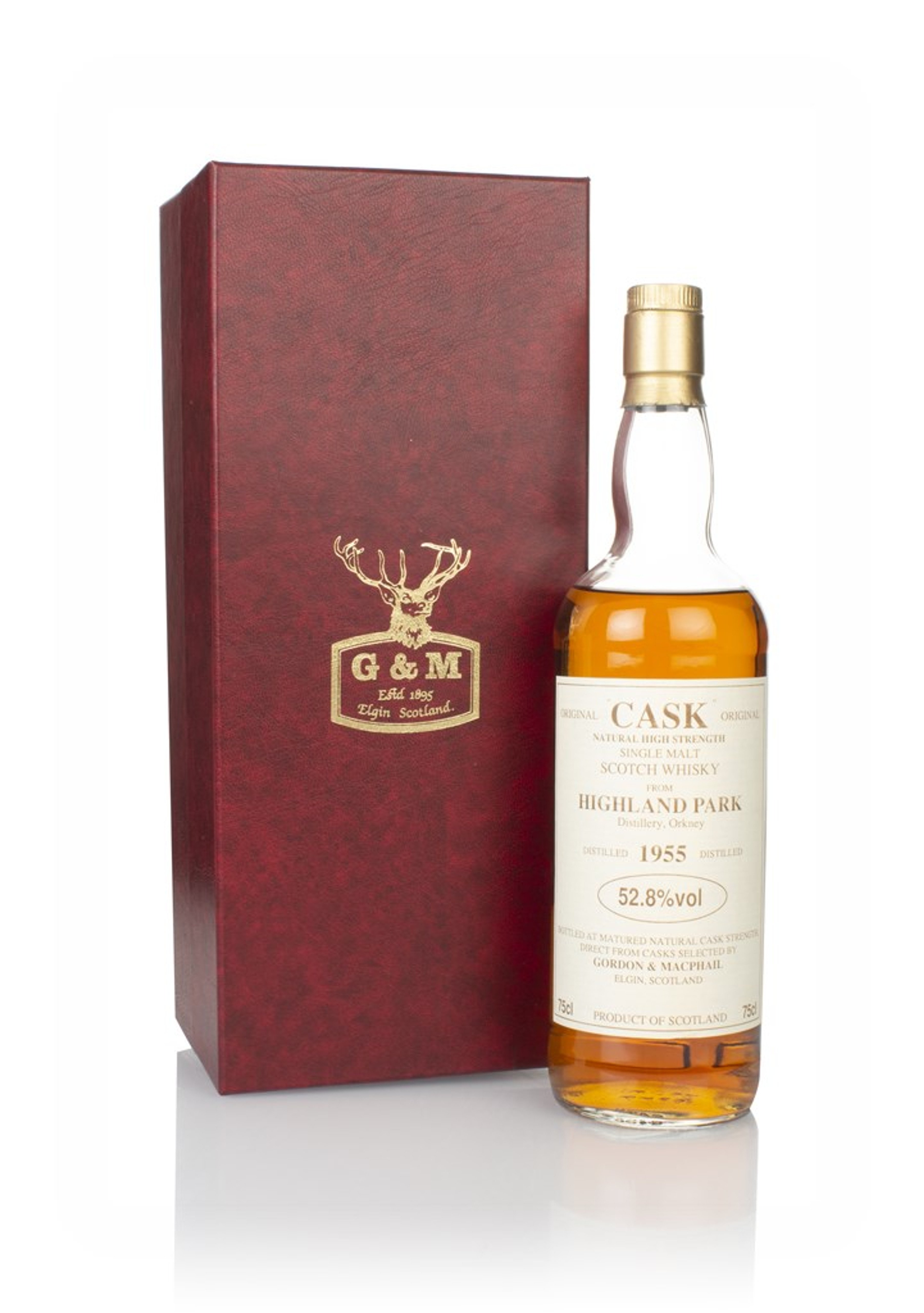 An old bottling of Highland Park single malt Scotch whisky, distilled back in 1955 and eventually bottled up by top independent bottler Gordon & MacPhail. Rare and exciting stuff here – a well-kept collectible bottling from yesteryear featuring whisky from a much-loved distillery!
