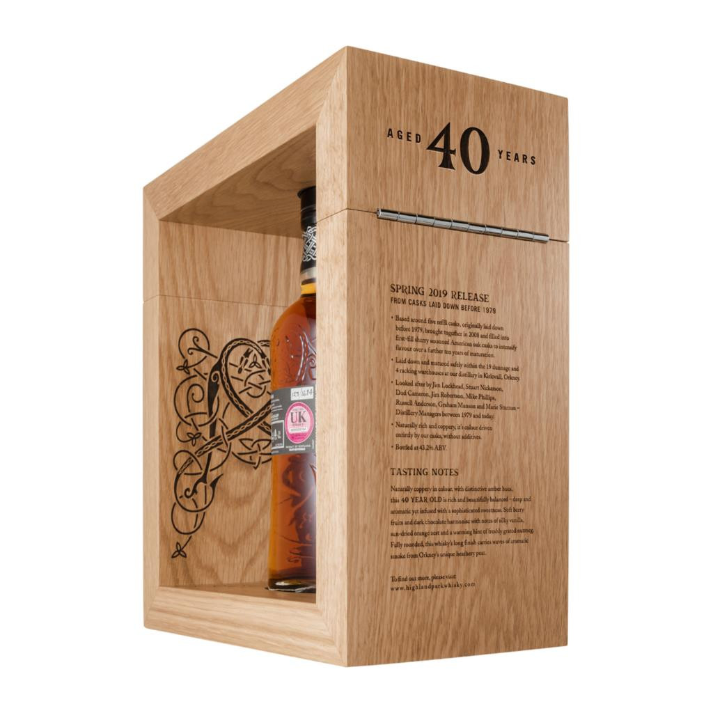 Highland Park vintages from years long passed are something of a treat, and this exceptionally impressive Orkney single malt has witnessed a smashing 40 years of maturation! That's right, four whole decades. After such time, it was presented in this rather lovely vessel, adorned with a striking array of Viking symbols complete with a wooden presentation case.