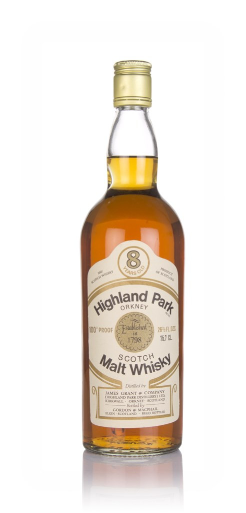 This is an antique bottling of 8 year old single malt from the Highland Park distillery, independently bottled by Gordon & MacPhail. No idea quite how old it is, but the design on the label suggests that it's rather old indeed.