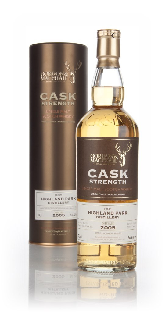 9 year old Highland Park single malt Scotch whisky, bottled for Gordon & MacPhail's wonderful Cask Strength range. The whisky was distilled on the Isle of Orkney in April 2005 and left to mature. This release was drawn from three first-fill bourbon barrels in October 2014 and bottled at 56.6% ABV.