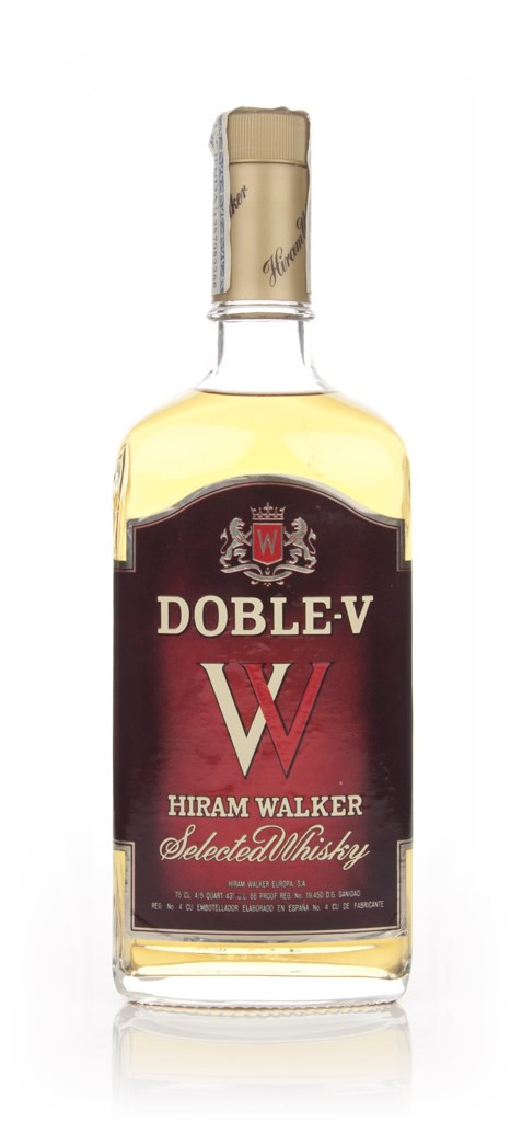 A bottle of Hiram Walker Doble-V, a blended whisky that was made for the Spanish market. If you look closely at the label, you'll see that the Doble-V actually looks like a W, which supposedly stands for Walker. Clever, very clever. A product of the 1980s.