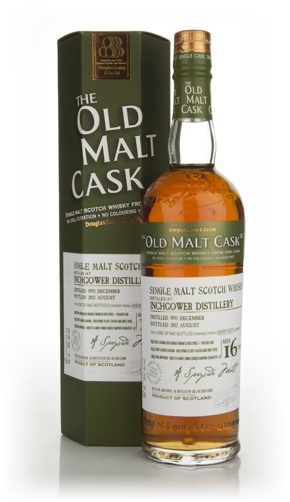Being a 50 year old Scotsman, with a lifelong taste for good Scotch, I have tasted an awful lot of good and great Scotch in my life. From Macallan, to Lagavulin, Aberlour, Glenmorangie, Oban, Ardbeg or Glenlivet and many more, I have found my favorites over the years. And then there's THIS! The Inchgower 16 Year Old 1995 - Old Malt Cask (Douglas Laing) is quite frankly the most amazing thing I have ever tasted in my life. I first tasted it in Edinburgh at The Whisky Shop on Victoria Street.. After the first couple of tastes, I bought the last three bottles they had. It's best tasted with no water or ice in it; just neat. The first sip is complex and powerful; the first thing I noticed was the citrus effect down the sides of my tongue; a butterscotch/slightly burnt sugar taste, almost like the top of a creme brulee follows, with a hint of leather and some pepper; dried fruits/raisin taste is slight and pleasant. Each subsequent taste, emphasizes different characteristics and brings previously tasted subtleties to the fore. I have had three of my friends who are Scotch lovers try this heavenly stuff and all three have basically blamed me for ruining their lives, due to tasting the Laing Inchgower.. It really is THAT good. My previous favorites all fall short now in comparison; my Lagavulin 16 is powerful, yes, but lacks the amazing complexity and the flavour this Laing Inchgower has; my Macallan seems pale and a shadow of it's former self; the Aberlours, while still fun and drinkable, seem to lack depth and interest now. At this price, I can't conceive of why there's any of it left; if you can find it, buy it.