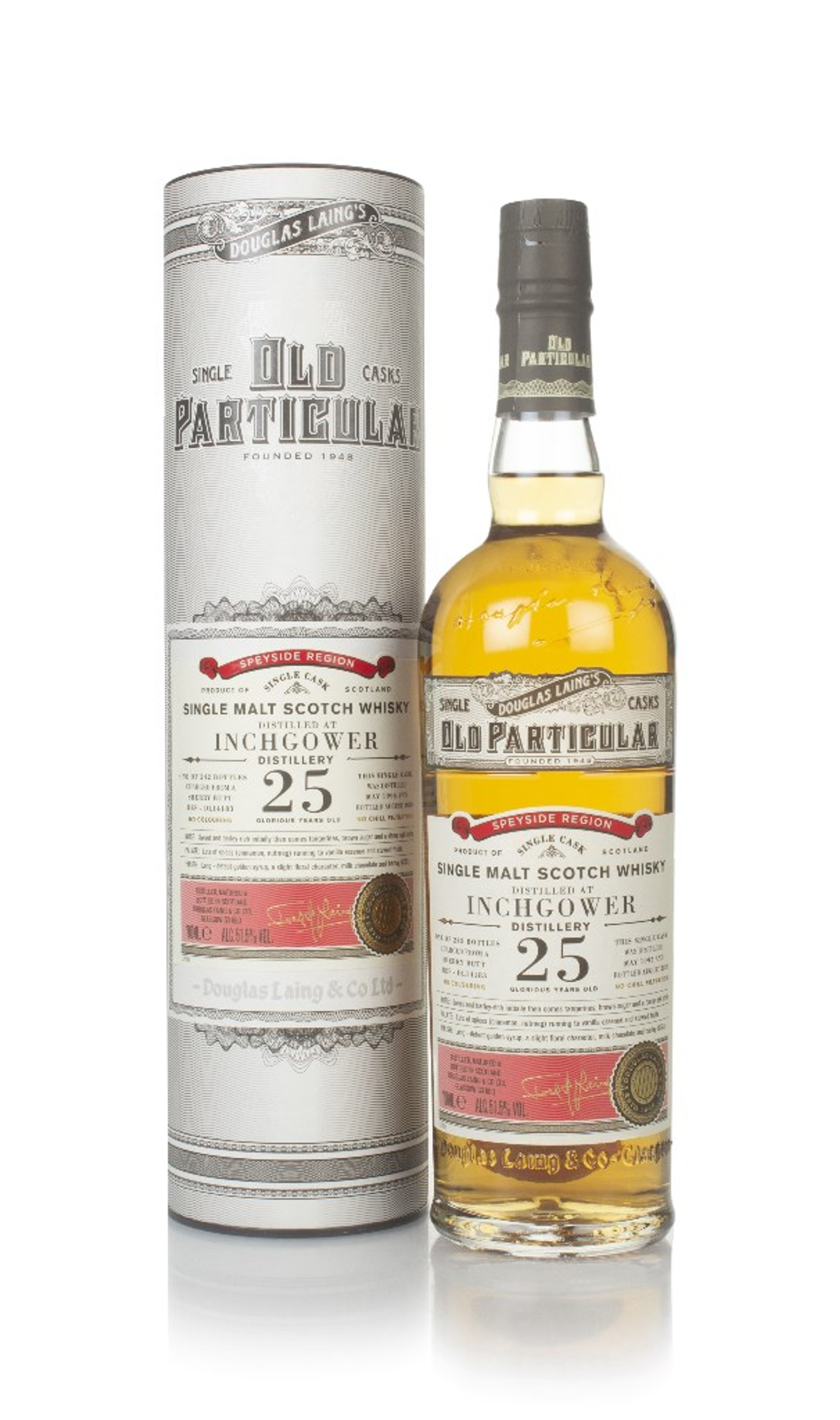 A well-aged Speysider here from Inchgower, independently bottled by Douglas Laing! Distilled back in 1995, the single malt spent the next quarter of a century in a single sherry butt. Eventually, it was bottled at 25 years old for the Old Particular series, with an outturn of 242 bottles at 51.5% ABV.