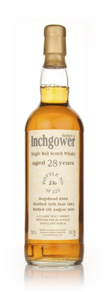 This was distilled on the 20th June 1982 at the Inchgower distillery. It was aged for 28 years in hogshead number 6966 before bottling at cask strength on the 5th August 2010 for the Bladnoch forum. A release of 222 bottles.