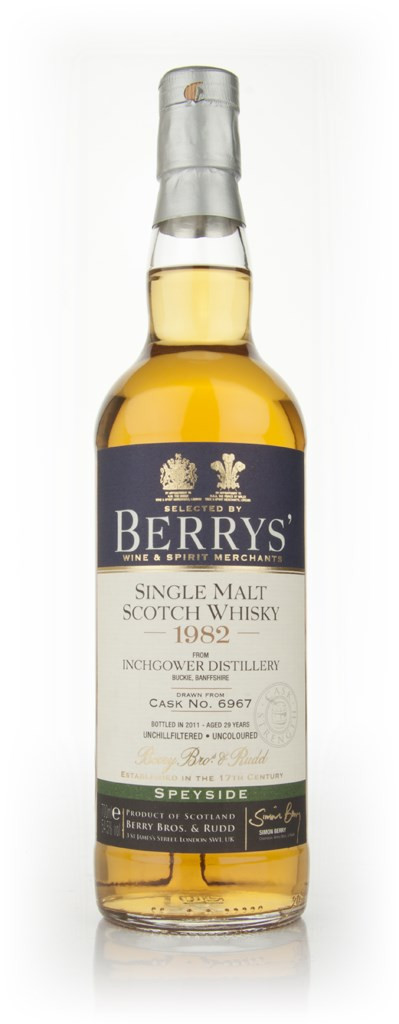 Wine Merchants Berry Brothers and Rudd's own bottling of the glorious Speyside whisky of Inchgower. This single malt whisky was bottled at cask-strength without chill-filtration and a tidy twenty-nine years of ageing.