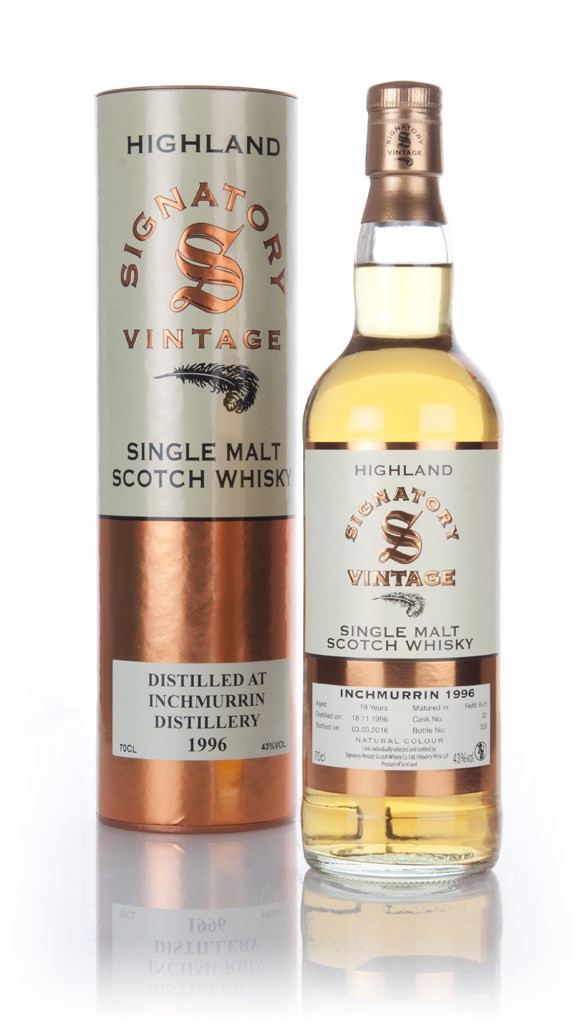 This is an independently bottled single malt from the Loch Lomond distillery, released under their Inchmurrin name (they distil a number of different styles of whisky at Loch Lomond and release them under different names). It was distilled in November 1996, set aside to mature in a single refill butt and bottled 19 years later in March 2016 by the chaps from Signatory.