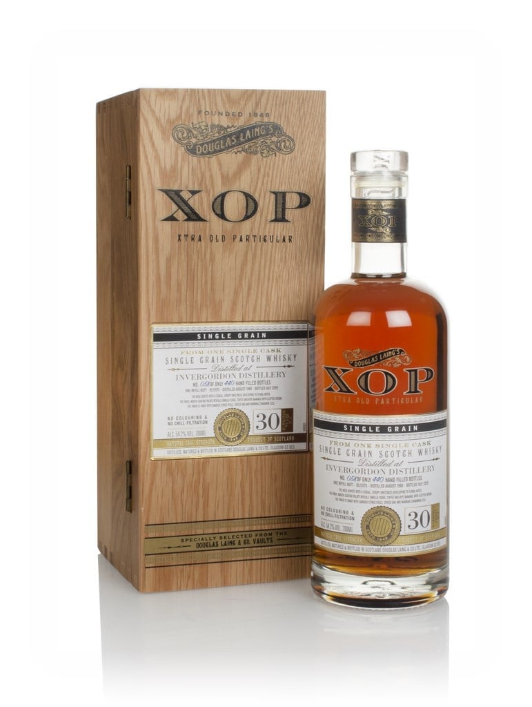From Douglas Laing's fantastic Xtra Old Particular range comes a 30 year old Invergordon single grain, matured in a refill butt cask from August 1988 to July 2019. After three decades of peaceful slumber, this grain whisky was bottled at cask strength, with an outturn of 440 bottles.