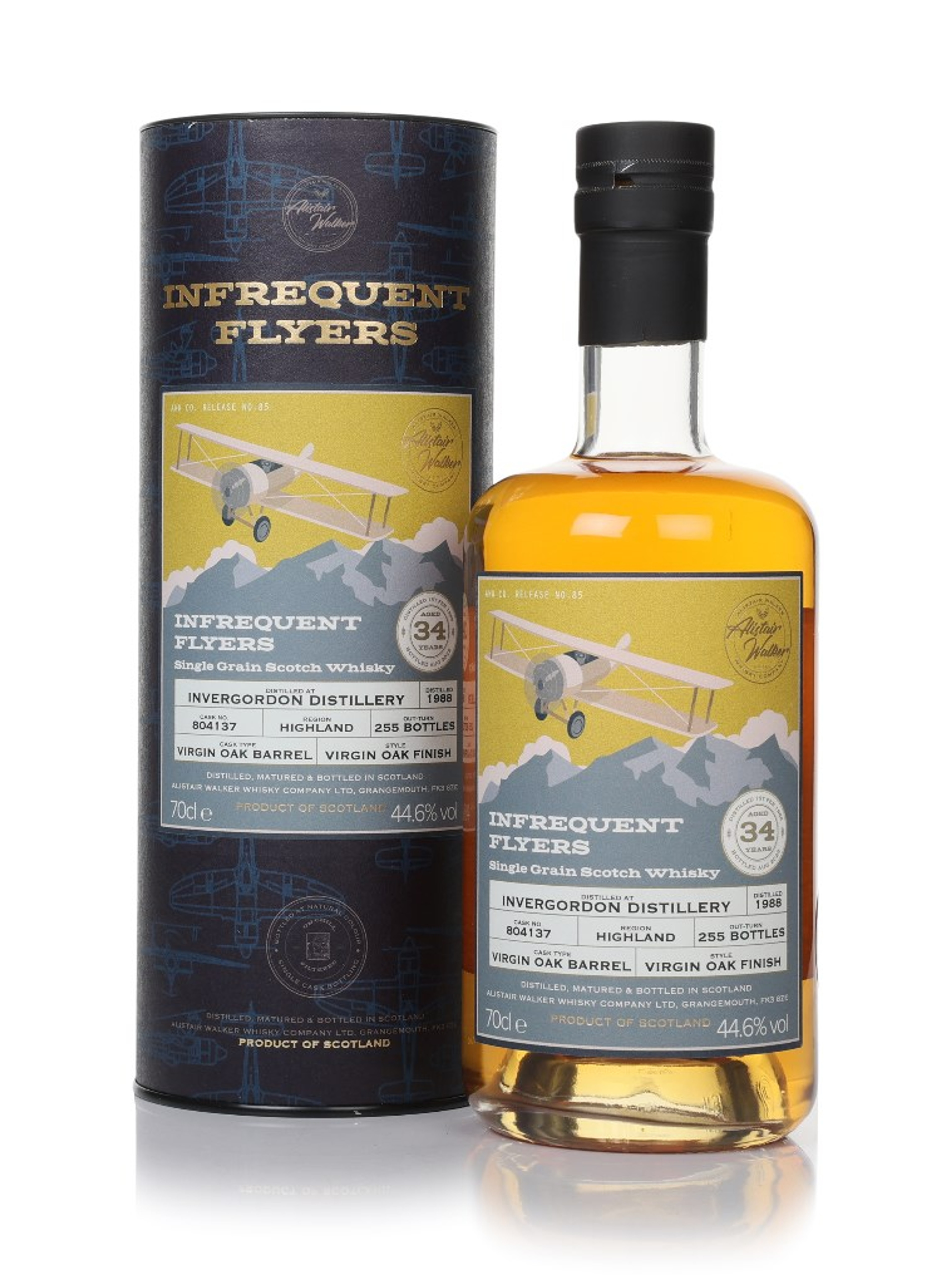 Jetting back to the '80s with this Highland single malt whisky distilled at Invergordon in 1988. It spent an impressive 34 years maturing in a single virgin oak barrel before it was opened up by indie bottlers Alistair Walker for its Infrequent Flyers collection. An outturn of only 255 bottles, naturally coloured and non-chill filtered.