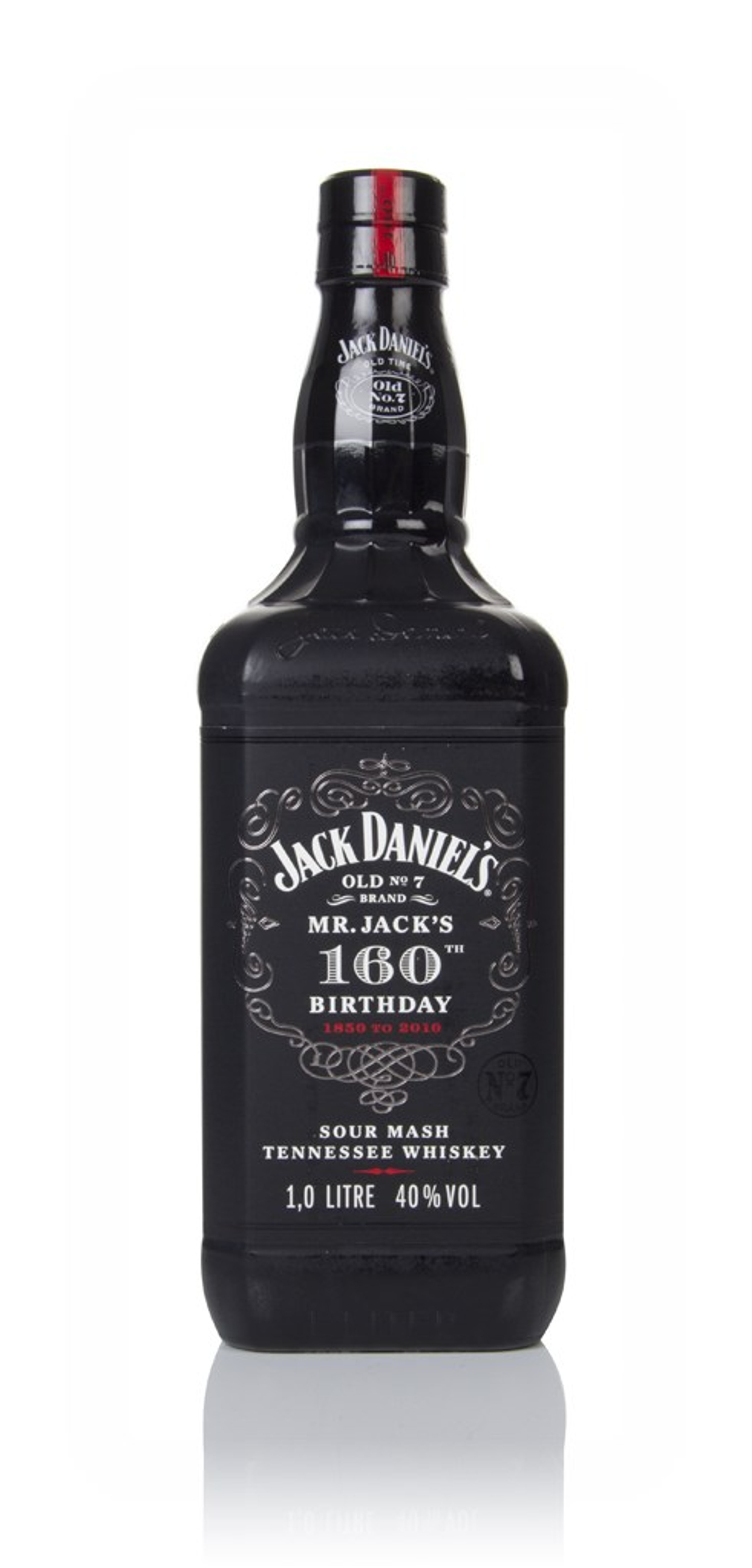 A special, limited edition black, opaque bottle of Jack Daniel's Tennessee Whiskey, bottled to commemorate Mr. Daniel's 160th Birthday.