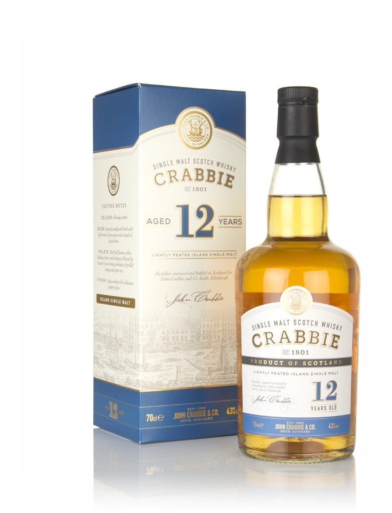 12 year old single malt from an undisclosed distillery, released by John Crabbie & Co. as its distillery gets set up. According to the label, this is a lightly peated Island single malt, so we'll leave you to try and figure out which distillery it came from...