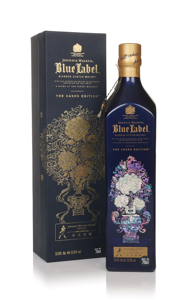 A limited-edition Johnnie Walker Blue Label, one of just 500, that was bottled for the Johnnie Walker House in Seoul, South Korea in a porcelain decanter decorated in mother of pearl. 'Bu Gwi Yeong Hwa' refers to a man of wealth, status and distinction rising in the world and achieving fame.