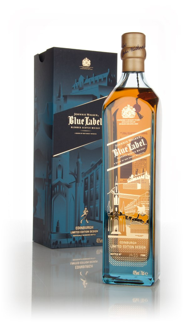 A limited edition presentation of Johnnie Walker's Blue Label, their premium blend. This comes from a series of releases from Johnnie Walker, highlighting cities around the world. For this one, they've focused on Edinburgh - the designs features notable landmarks like the Duke of Wellington statue, the Scott Monument and Edinburgh Castle.