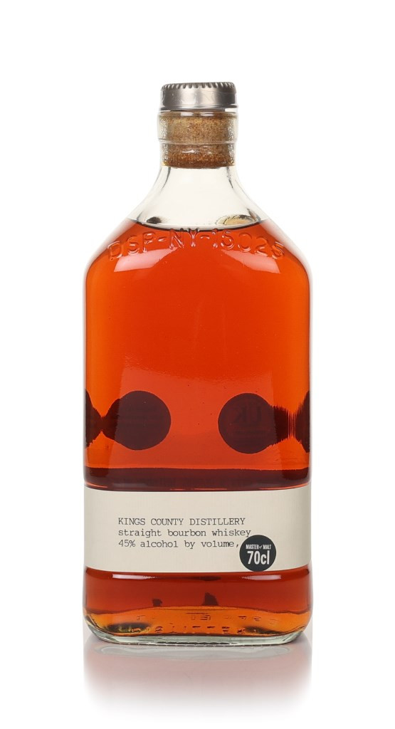 A bourbon made more like Scotch whisky, Kings County uses 80% New York organic corn from the Finger Lakes and English Golden Promise barley for a high malt recipe that avoids the wheat or rye typical in Kentucky bourbon. This is double pot distilled before being aged in a variety of new charred oak barrels for 3-6 years.