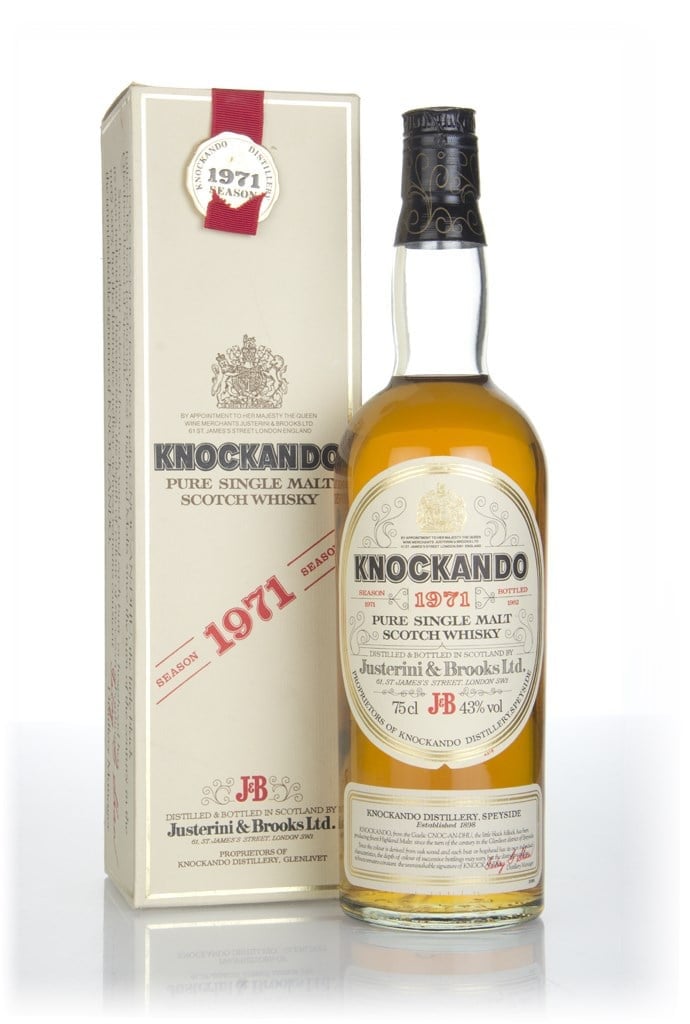 This bottling of single malt Scotch whisky was distilled at the Knockando distillery in Speyside. This brand predominantly bottles by vintage rather than age, and this bottling comes from the 1971 vintage.