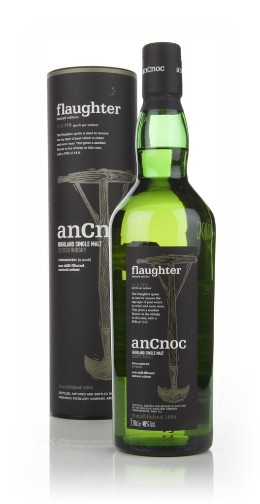 The peatier of the two first releases from the anCnoc Peaty Collection by Knockdhu distillery, the Flaughter is named after a spade used to take off the top layer of peat, which is usually richer and has more roots. This imparts a smokier quality to the whisky, a notion Knockdhu are trying to convey through the peatier Flaughter.