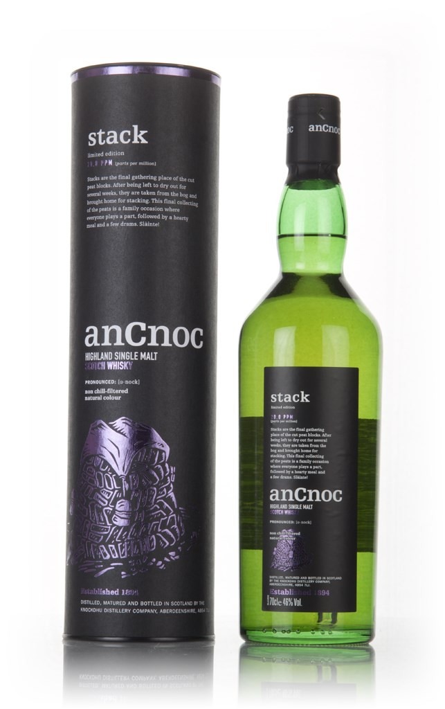 A late-2016 addition to anCnoc's Peaty range - Stack peated to 20PPM and was drawn from American ex-bourbon barrels before being bottled at 46% ABV. The name comes from the last step in the peat-gathering process, where a great pile of peat slabs would be assembled and left to dry before being burnt.