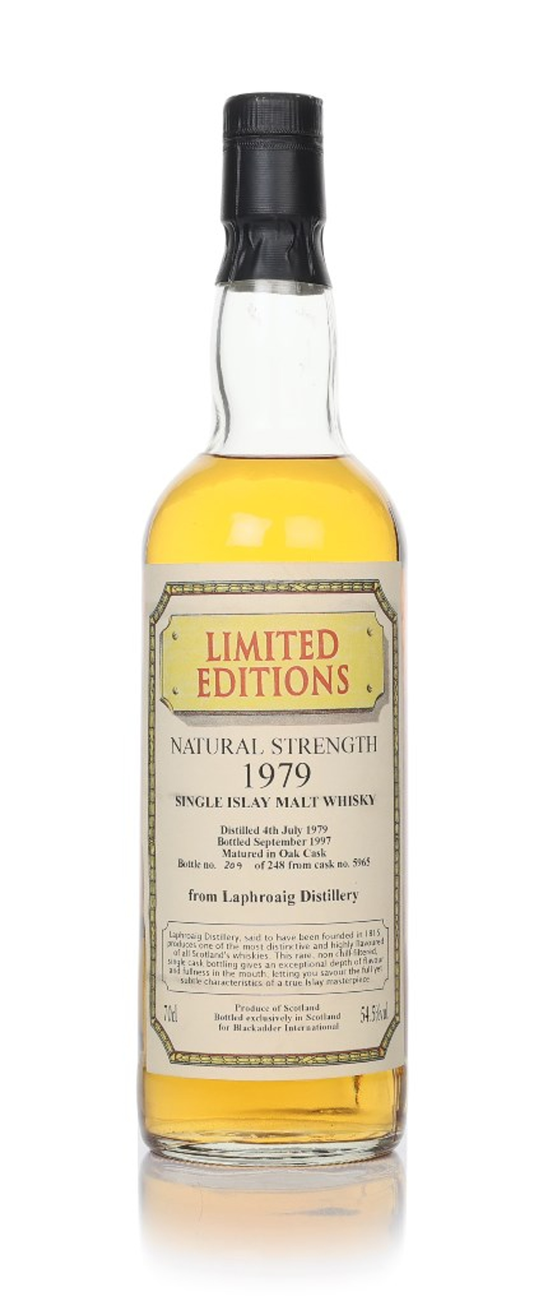 Here we have a bottled piece of history, Laphroaig distilled in July 1979. Matured in a single oak cask, this Islay single malt whisky was bottled in September 1997 by Blackadder International for the Limited Editions series. An outturn of only 248 bottles, at a cask strength of 54.5% ABV, naturally coloured and non-chill filtered.