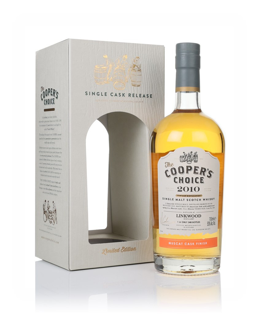 From the Linkwood Distillery comes an 11 year old single malt Scotch whisky, independently bottled by The Vintage Malt Whisky Co. as part of The Cooper's Choice range. It was distilled back in 2010, and first aged in American oak before being moved over to a Muscat wine cask for a finishing period, and then bottled in 2022. 348 bottles were produced.