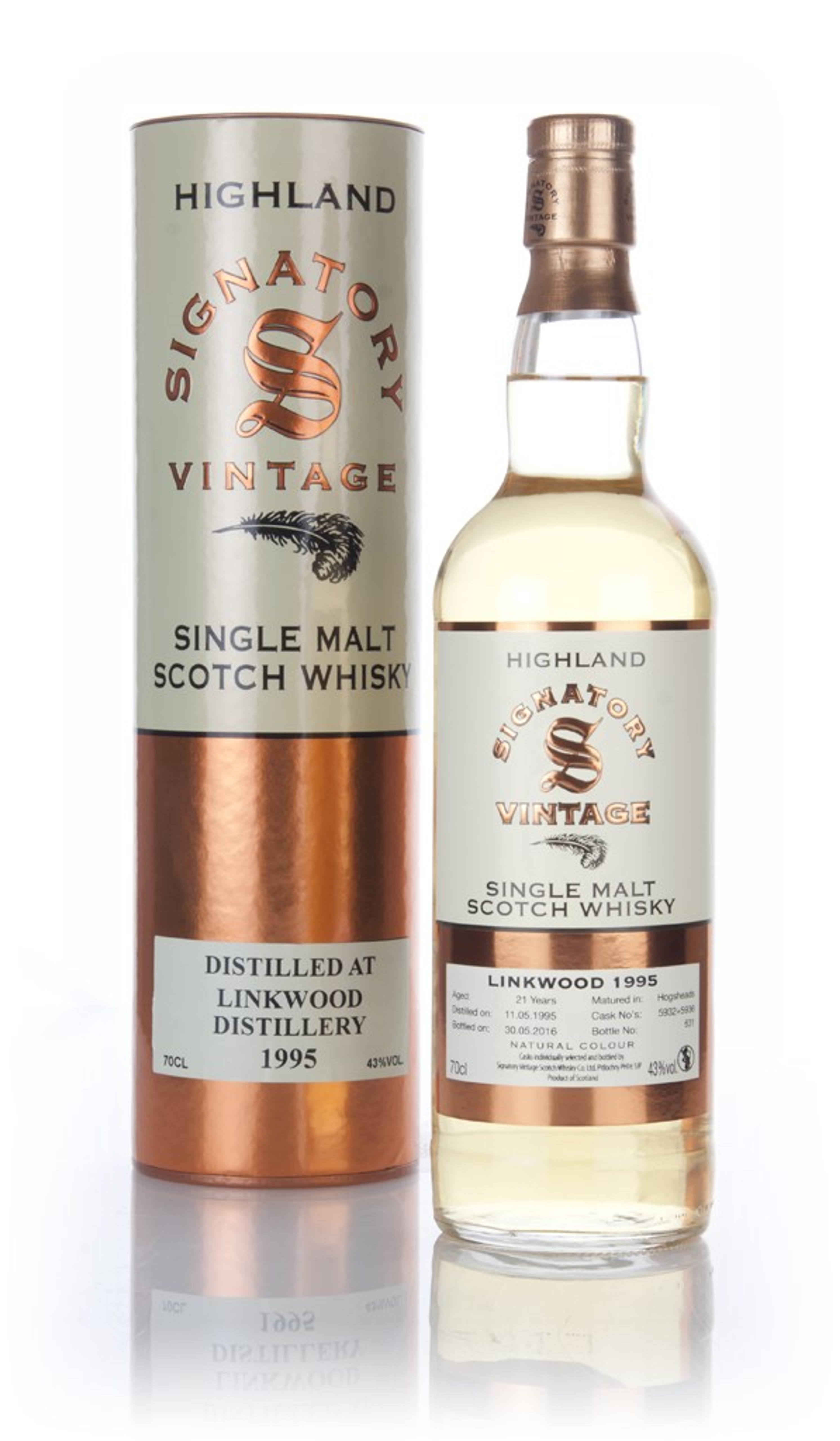 This is a 1995 vintage Linkwood single malt Scotch whisky matured for over 21 years in two casks before being bottled by Signatory.