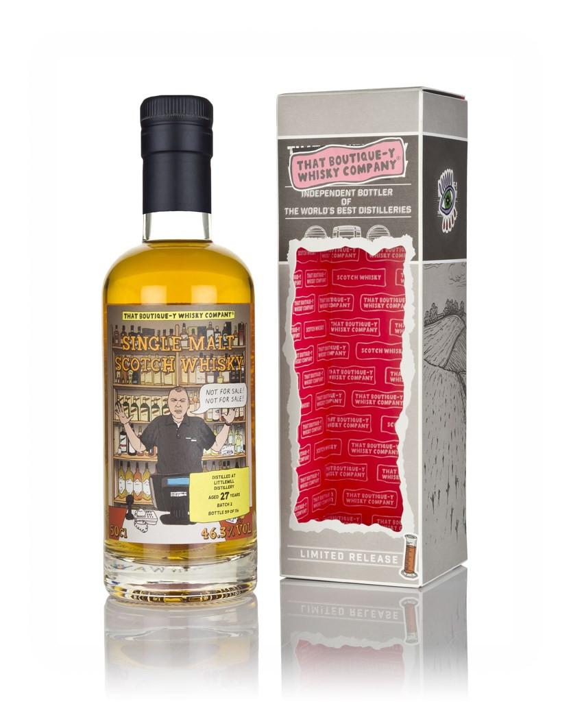 A single malt Scotch whisky from the now sadly closed Littlemill distillery, independently bottled by That Boutique-y Whisky Company. These are always popular, they are pretty delicious and limited after all. Menno Bijmolt, the star of the label art, has the right idea. You can see his ample collection of rare and old Littlemill bottles behind him – and he's clearly very keen for them to stay there.