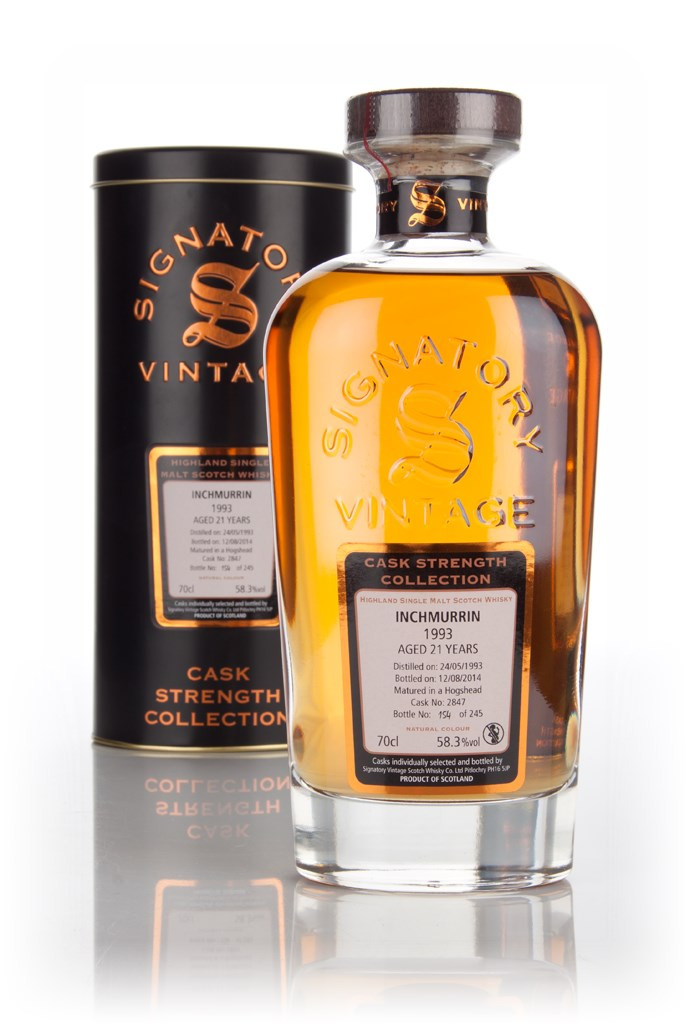An Inchmurrin single malt from the Loch Lomond distillery, which was matured in a single hogshead cask from May 1993 to August 2014. It was bottled at 21 years old, and at a generous 58.3% ABV, by Signatory for their superb Cask Strength Collection. 245 bottles were produced.