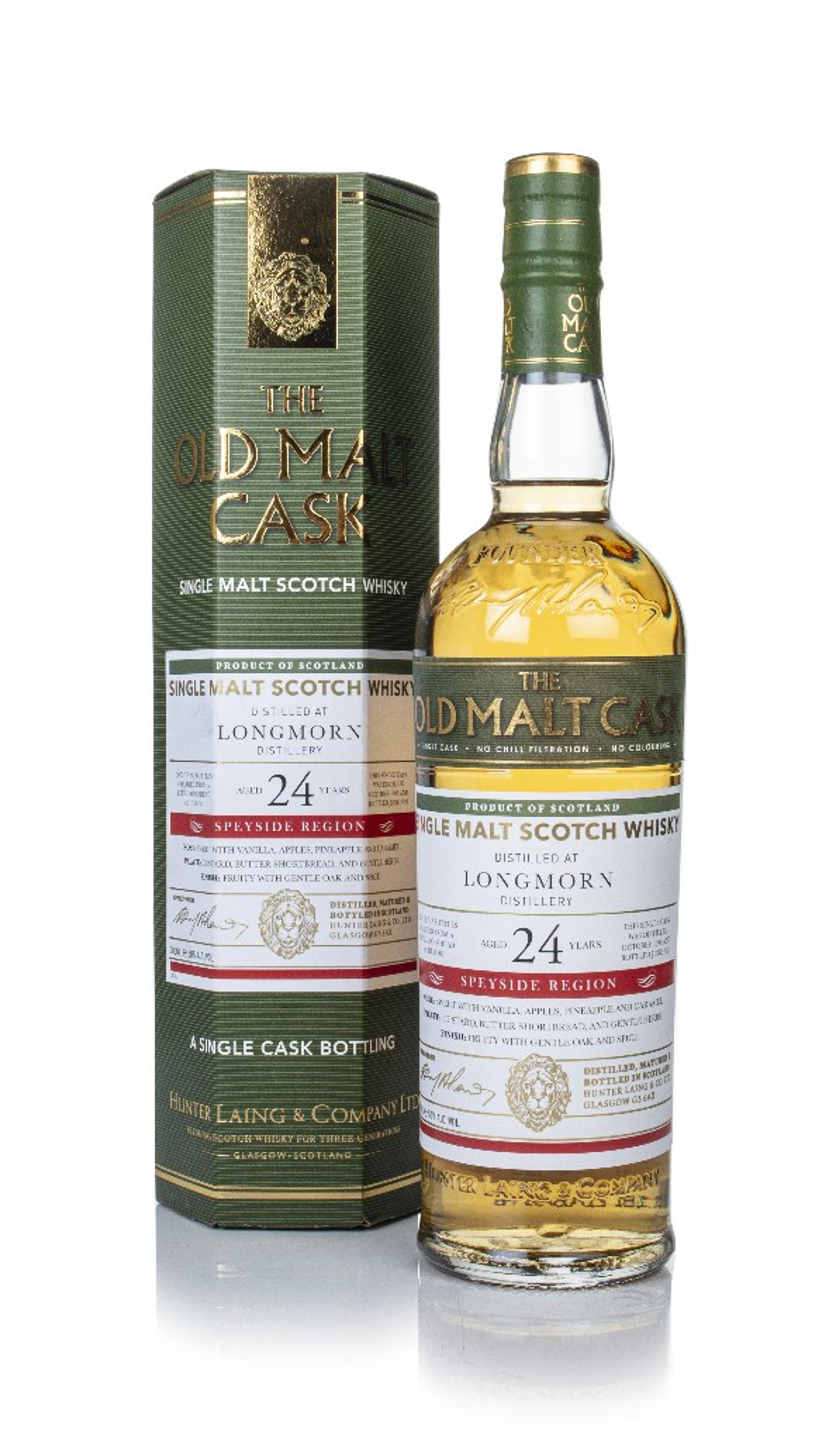 A Longmorn single malt Scotch whisky matured in a refill hogshead for an impressive 24 years – from October 1996 to June 2021. Following that rest, it was bottled up by Hunter Laing for the long-running Old Malt Cask series at 50% ABV. A release of 212 bottles.