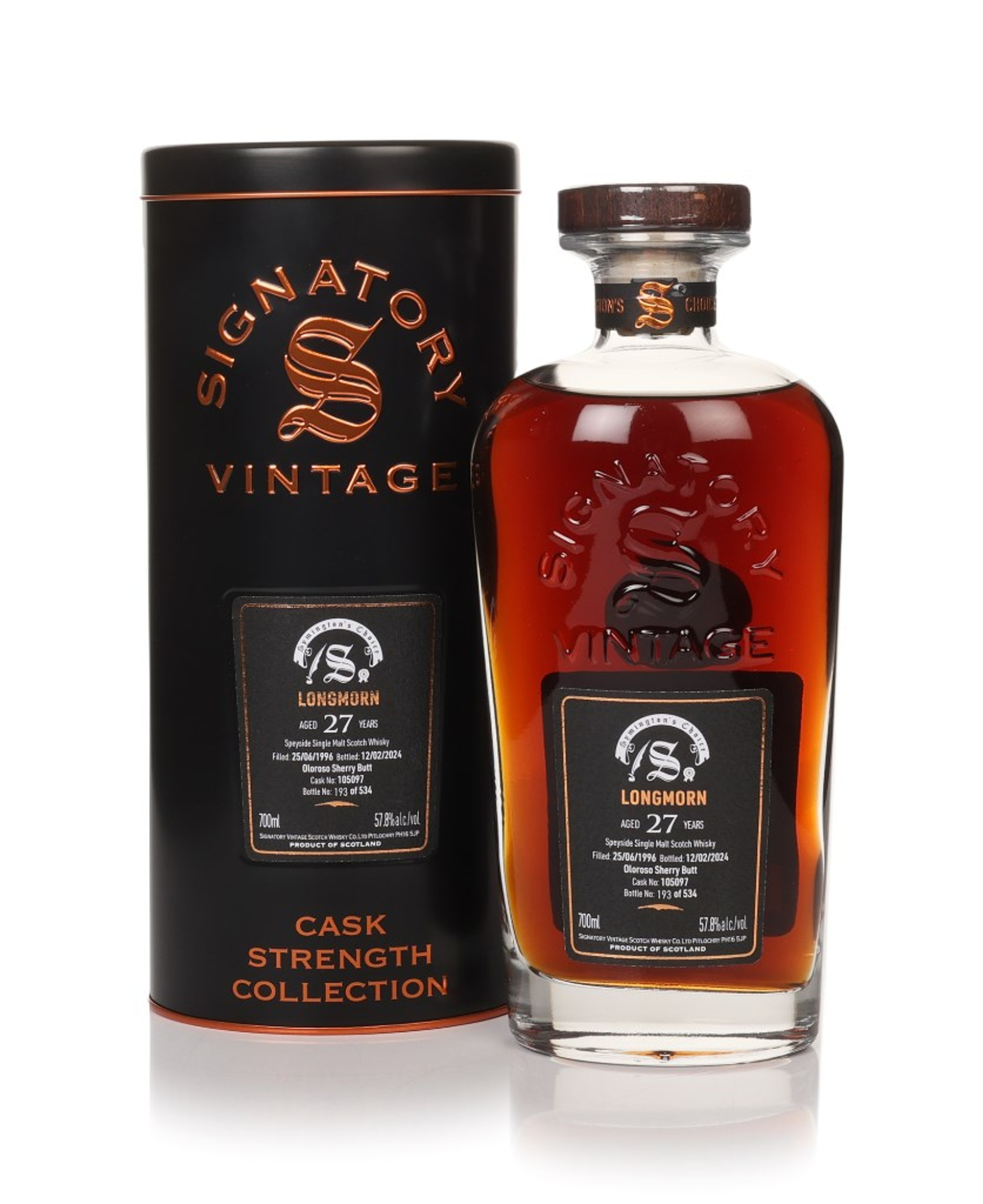 This generously aged single malt from Longmorn joins the Symington's Choice series from Signatory as part of its Cask Strength collection. Distilled in 1996, the whisky spent 27 years maturing in a single oloroso sherry butt until it was bottled in 2024. A release of 534 cask-strength bottles.
