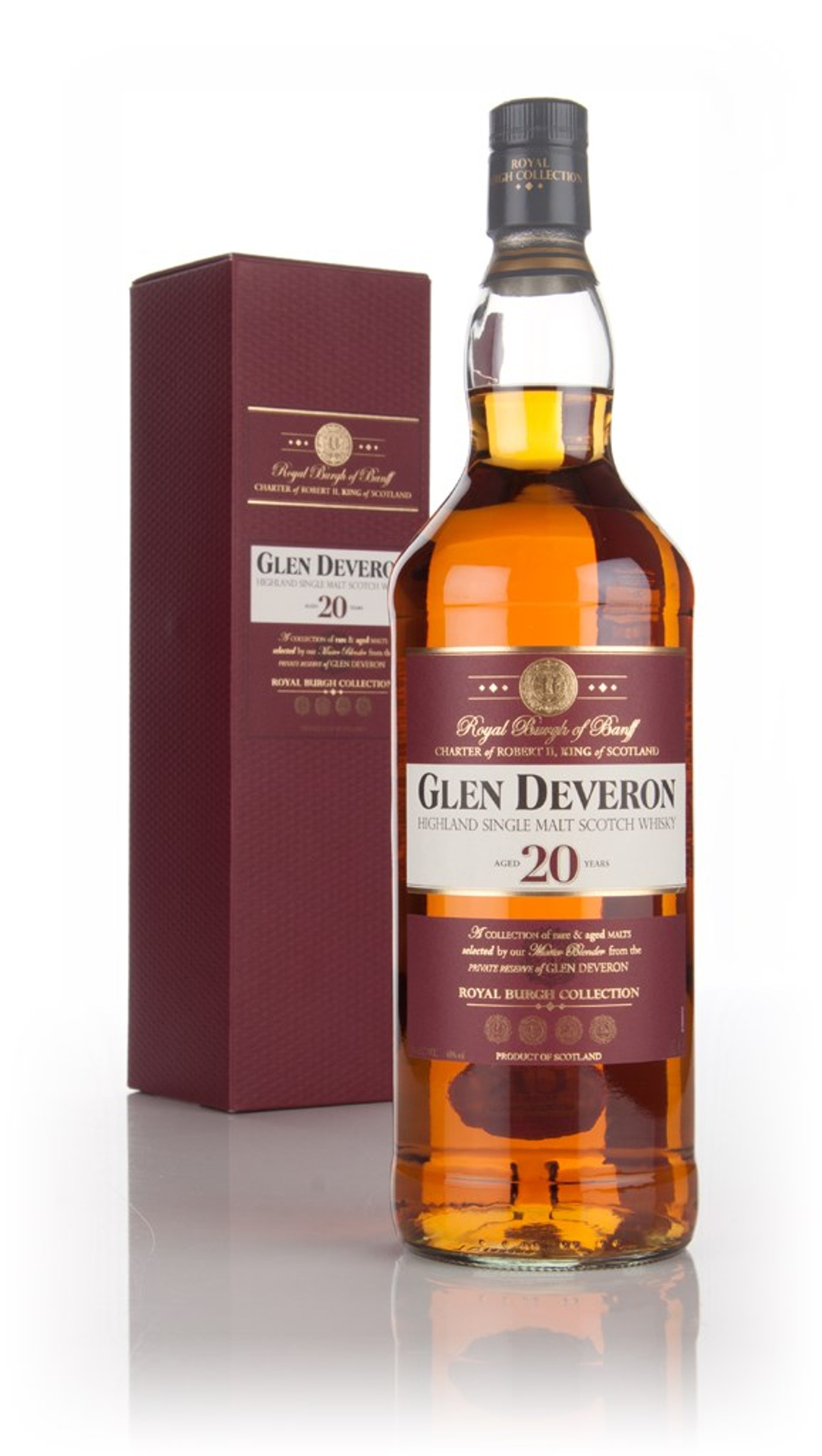 This is a 1 litre bottling of 20 year old Glen Deveron single malt Scotch whisky, originally released for the Travel Retail market. 'Glen Deveron' is the name used by the Macduff distillery for their official bottlings of single malt. It's not often you get to see their whisky outside of independent bottlings, though it does find its way into many popular blends. Plenty of Sherry cask influence in this one.
